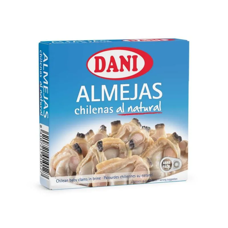 Las Almejas Chilenas son uno de los aperitivos más populares de España. Estas deliciosas almejas son 100% naturales y procedentes de conservas Dani. Disfruta de los pequeños momentos, esos momentos de paz, tranquilidad y buena comida con el estupendo aperitivo de las almejas chilenas naturales.