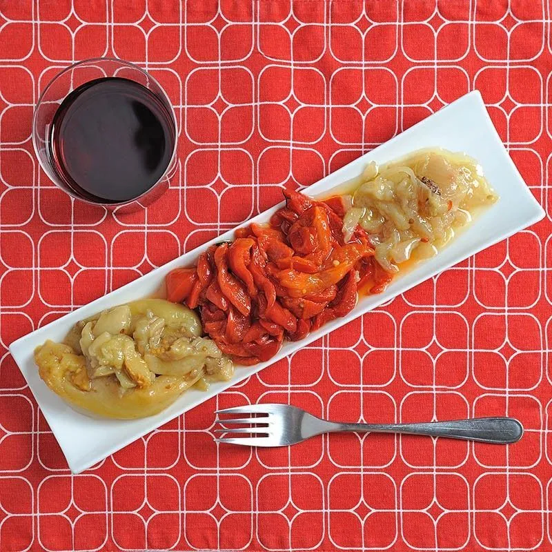 La escalivada de verduras es un bocado delicado, una mezcla de los sabores que aportan la cebolla, berenjena y pimiento asado. No necesita ningún tipo de preparación y se come en frío. Un plato ligero ideal para comer en verano. Lo elabora conservas la fragua, con su gama La Fragua Deluxe, que garantiza que emplea las materias primas de mejor calidad.