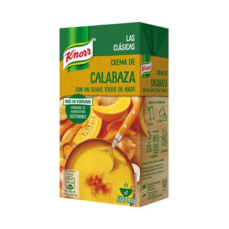 | Ingredientes | Agua, calabaza 26%, zanahoria 14%, cebolla 10%, aceite de oliva virgen extra 2,5%, almidón de maíz y sal. |