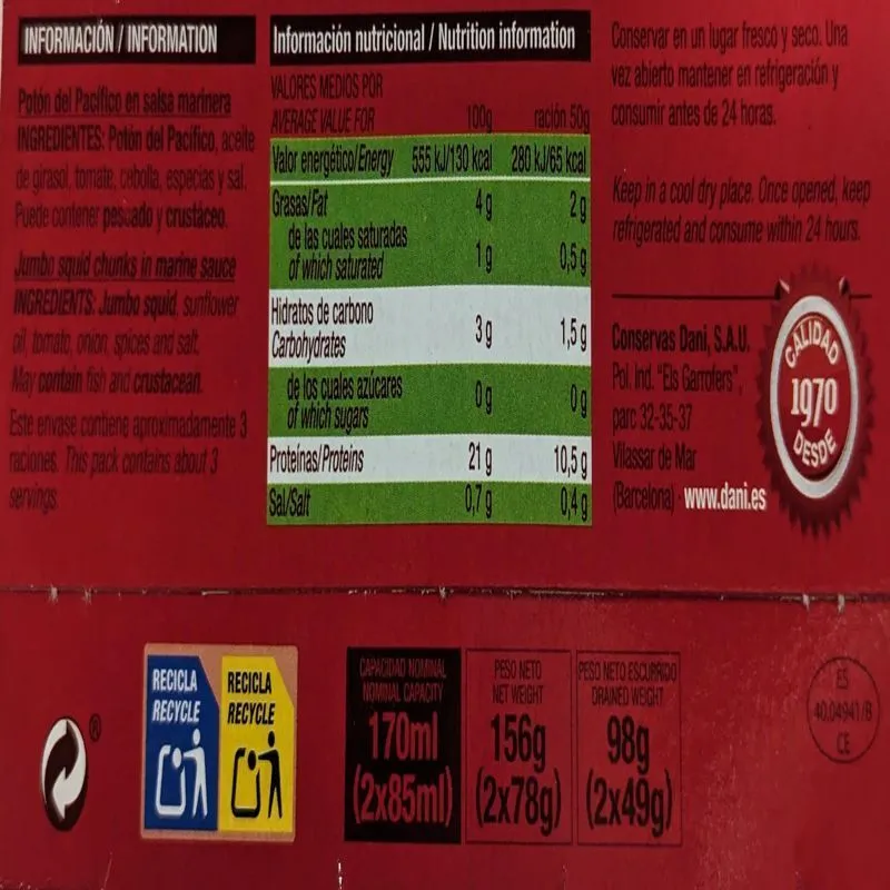 Fabricado por: Conservas Dani, S.A.U.
